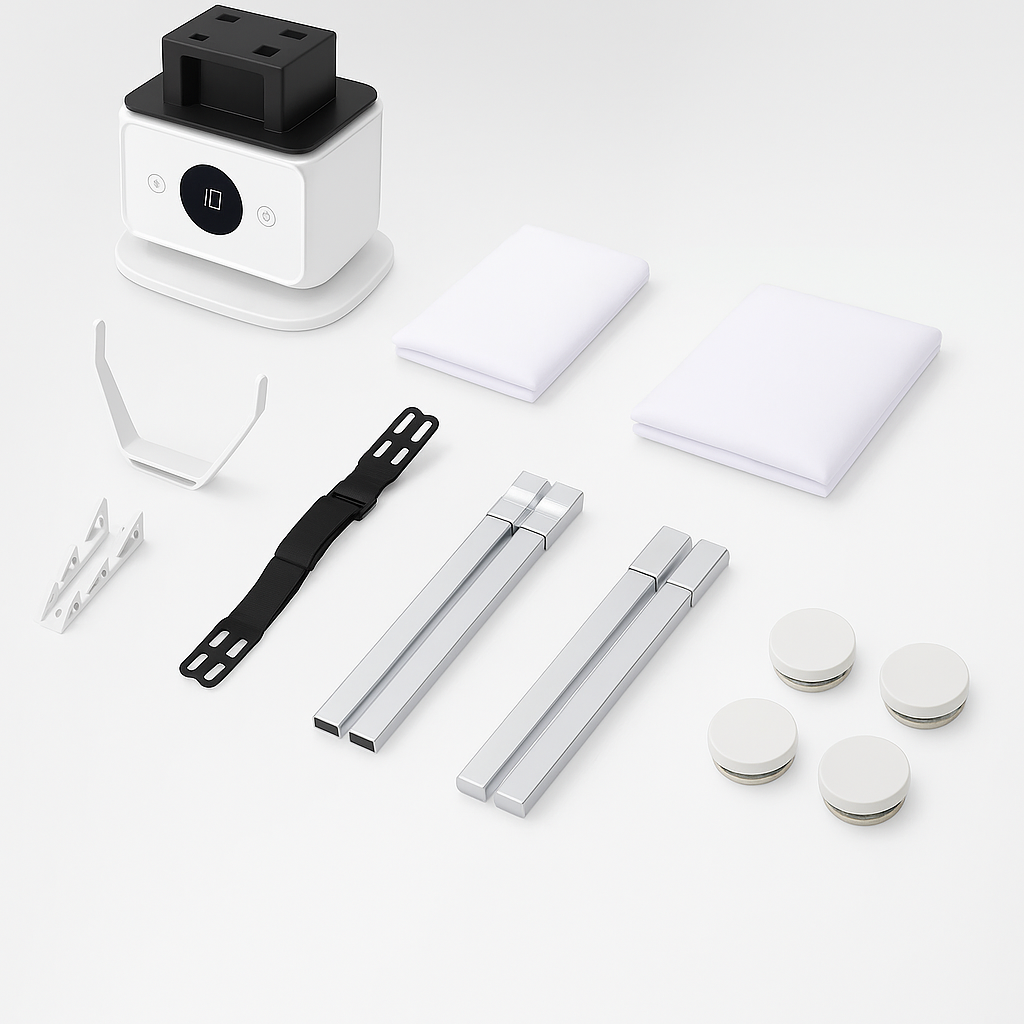Compact & Portable: When the job is done, it collapses down into a sleek, minimalist base that fits easily at the bottom of a wardrobe.